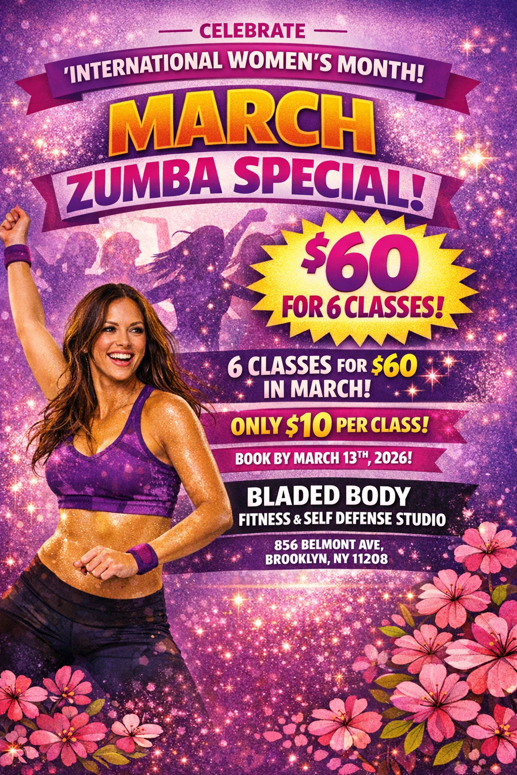 International Women’s Month Promotion. 6 Classes for the remaining 6 classes during the month of March only $60 (only $10 per session).